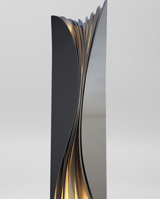 一片葉子的標識牌與金色及灰色的切面發光效果。