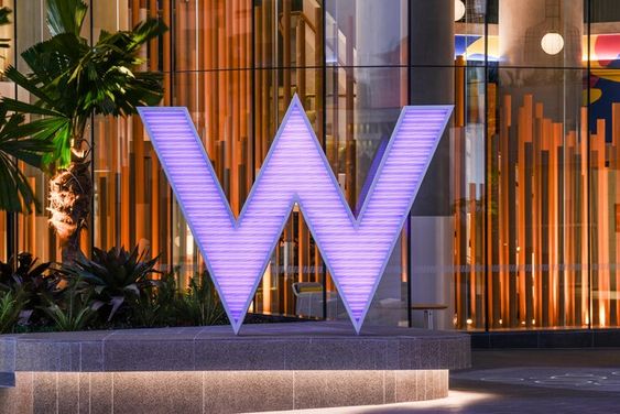 W酒店的W立體標識多種標牌的展現形式。